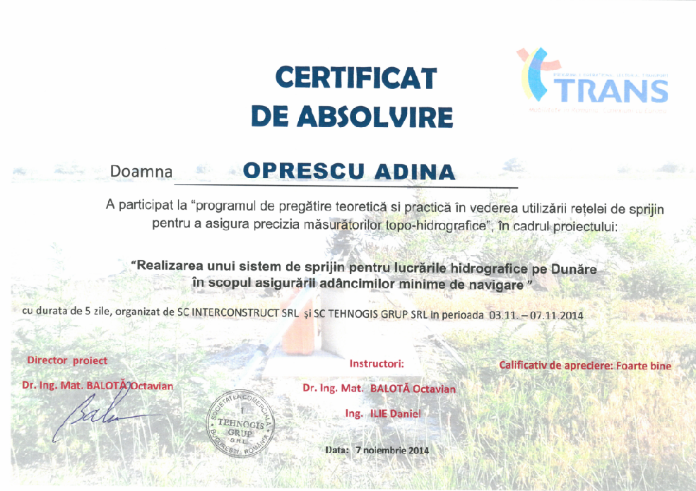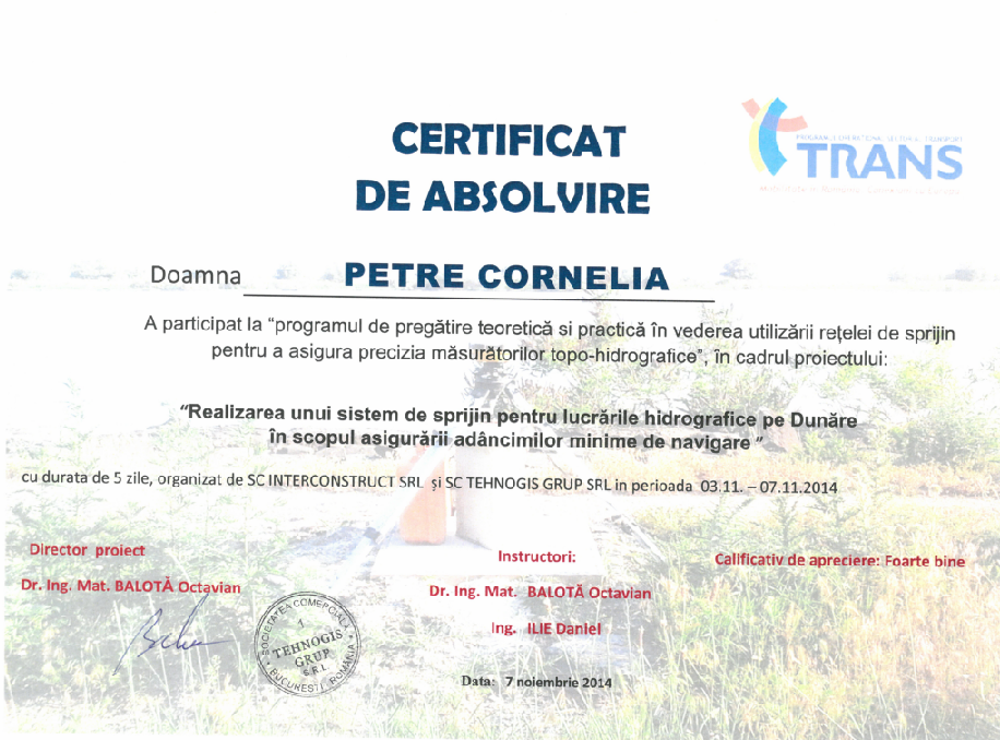 Realizare Măsurători Geodezice Instruire Personal Redeterminare Măsurători Geodezice Interconectare